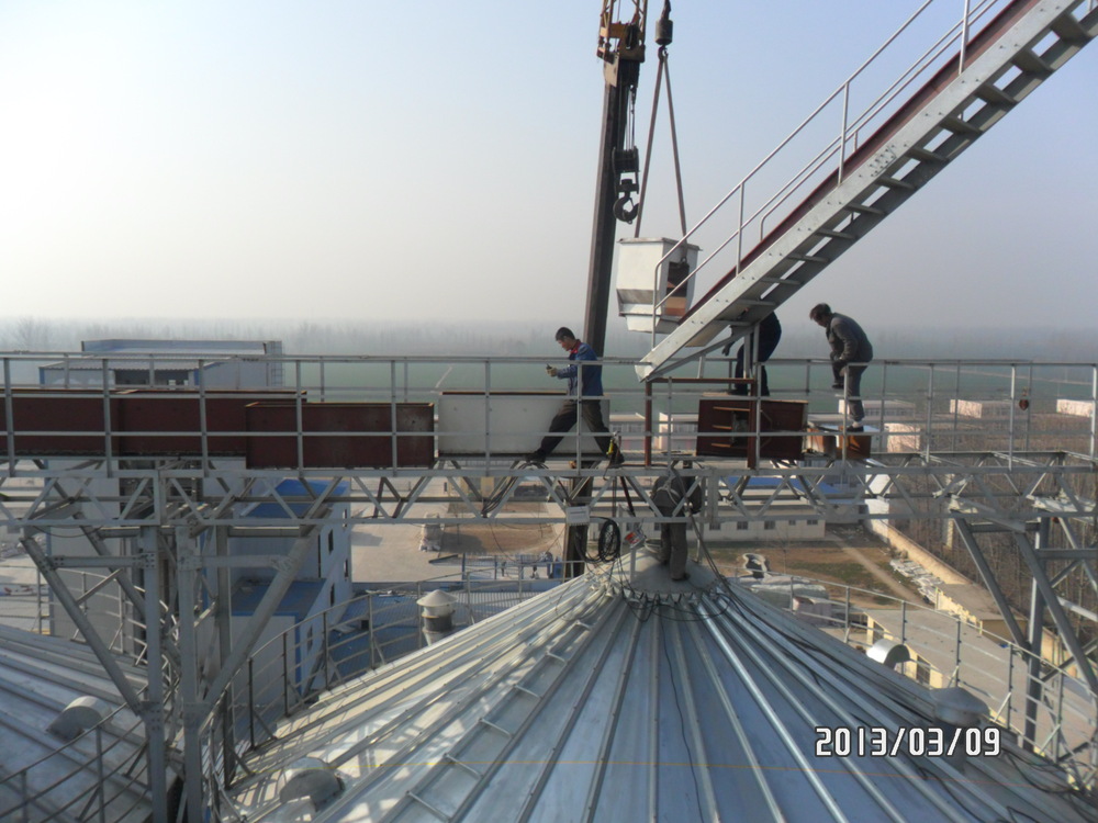 1、通風系統,倉頂安裝自然通風窗、引風機,錐底安裝鼓風機,引流空氣到倉內循環,保護糧食不受潮,極大的保證了倉內糧食的質量。
