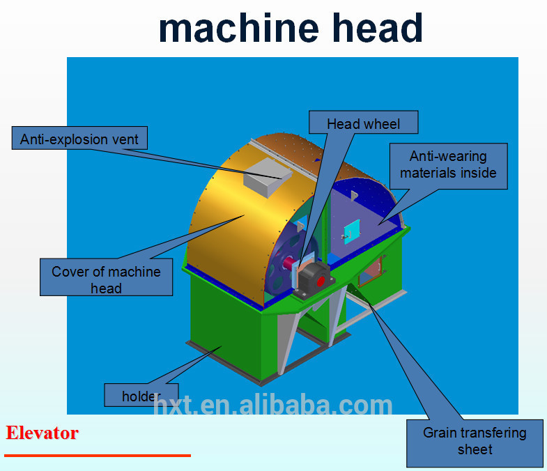 頭輪覆膠、防逆轉,機頭內襯耐磨高分子板,機筒采用咬合工藝強度高,國產電機及減速機, 高強尼龍畚斗帶、高強塑料畚斗,噴漆。高度為設備總高。