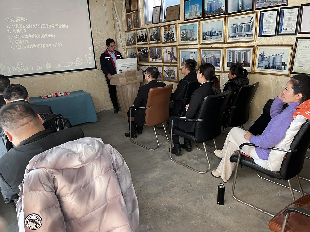 12月12日下午14:30分,山東雪萊糧倉智能科技有限公司2022年全年業(yè)績沖刺大會暨12月銷售啟動會在公司工廠駐地正式舉行,公司銷售部、生產(chǎn)部、技術(shù)部、財務(wù)部部分人員參加了此次會議。