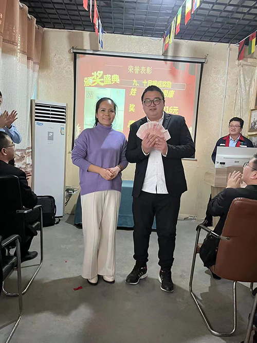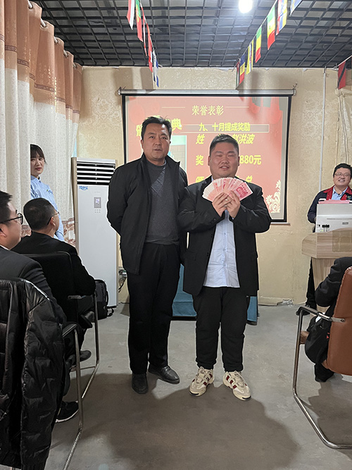 接下來公司總經(jīng)理靳傳麗及生產(chǎn)經(jīng)理張玉峰分別對獲獎銷售人員進行了現(xiàn)場現(xiàn)金頒獎,以資鼓勵。獲獎人員也分別作出個人宣言,力爭打好年前沖刺戰(zhàn)。